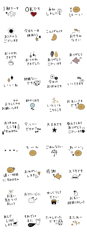 モノトーンと少しカラーを入れた大人女子でも使いやすいシンプルにまとめたスタンプです。シンプルでお洒落。敬語入り。