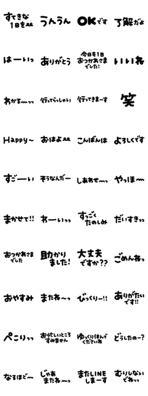 ちょこんと可愛い手書き文字♡省スペースでトーク画面を埋めないちょこんとスタンプ。