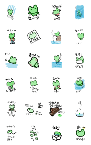 マモ画伯のカエルシリーズ スタンプに書いてある文字一覧