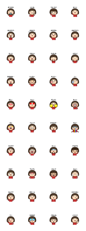 芋ジャージ女子スタンプ『エモーション』の第1弾。絵文字風でいろんな表情が詰め込まれた基本編。くーが より発売