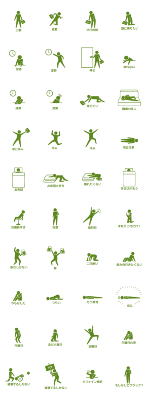 社会人のピクトグラム達 スタンプに書いてある文字一覧