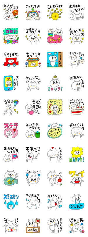 手描きイラストのようなねこのスタンプです。文字入りのスタンプで、会話になじむ使いやすいスタンプです。