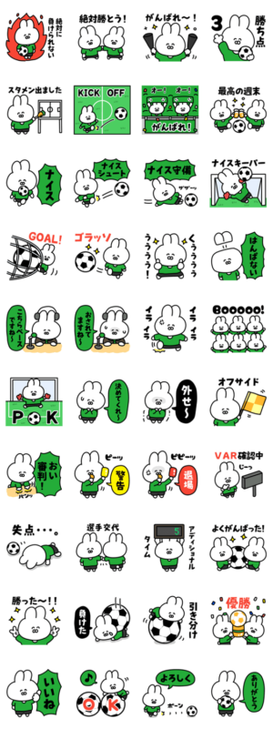 サッカーうさぎ【緑色&黒色のチーム】 スタンプ画像一覧