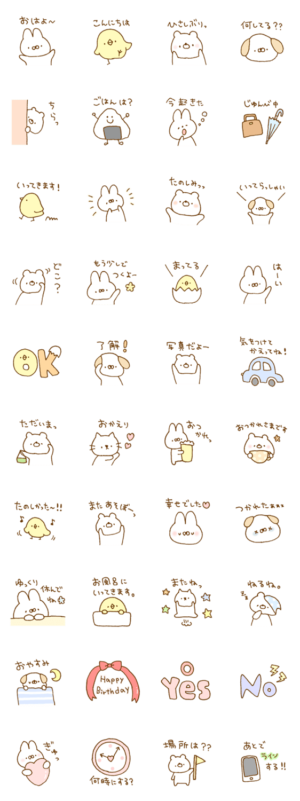 おはよう~おやすみ。起床→お出かけ→寝るまで1日使える、動物スタンプです。クマ・ネコ・うさぎ・犬♡ シンプルで使いやすいです。
