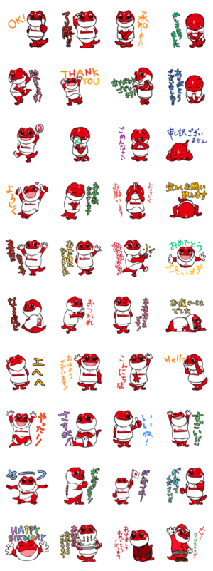 熊本のプロ野球チーム、火の国サラマンダーズのマスコット「さら丸」のスタンプです。よく使う言葉を中心に敬語や丁寧語も加え使いやすくしました。