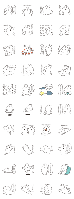 ゆるい返事をするうさぎのスタンプです。ナポリ より発売