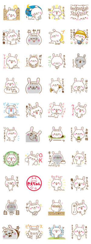 きえちゃんが使うスタンプ。貴栄子,きえ,喜恵子,喜惠子,喜枝子,希恵,貴絵,着得,貴恵,帰依,来得,喜重,希依,季江,紀恵子,清恵子,貴枝子など全国のきえ専用名前スタンプしん より発売
