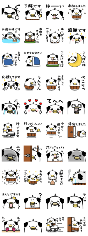 ほのぼのしているがけっこうアグレッシブなスタンプです。面白くて笑顔になれますね。