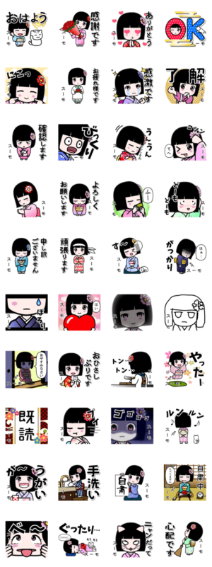 『スーモ』用のよく使う言葉を詰め合わせた座敷童子のスタンプです。和服 着物 浴衣