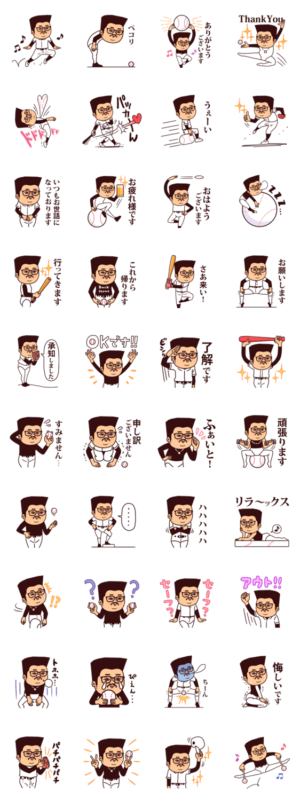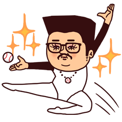 ぷりてぃマダム似の中年おじさん。草野球、少年野球、高校野球の父母、野球部OBの連絡や家族の応援にも。日常使いに、シュールでシンプルな敬語の野球スタンプ。