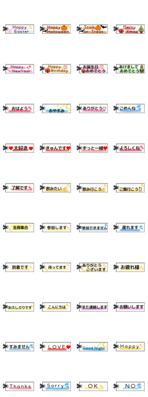 栞、付箋みたいな1年中、毎日使える省スペーススタンプです。イースター、ハロウィン、クリスマス、お正月など季節のイベント、日本語と英語が入ってます
