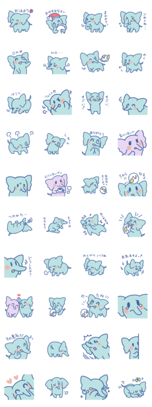 ゾウのうーちゃんとはなちゃん スタンプ画像一覧