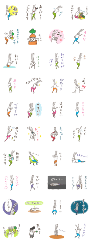 リアクションをテーマにしたスタンプです。うさぎタイツの豊富なリアクション力とシンプルでわかりやすい反応であなたの気持ちをどんどん伝えていきましょう。