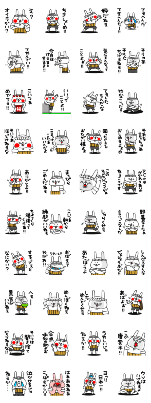 全力うさぎ江戸っ子編 スタンプに書いてある文字一覧
