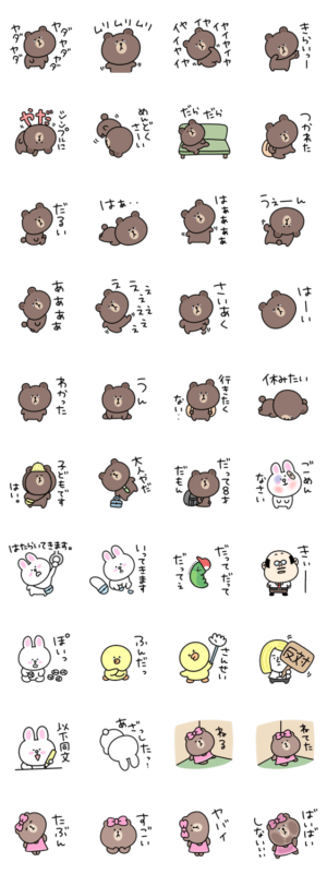 【イヤイヤ期】シュールなミニブラウン スタンプに書いてある文字一覧