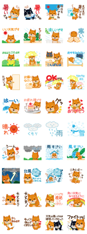 柴犬「ムサシ」30 天気 スタンプに書いてある文字一覧