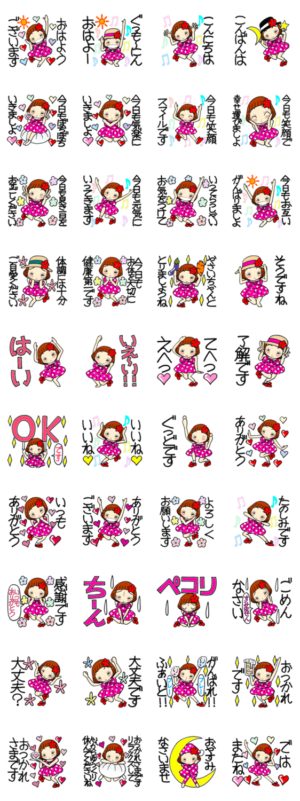 暇を持て余している分だけ「挨拶は自信があるの、私に任せて」そんな彼女の元気一杯の声が聞こえて来そうなスタンプです。