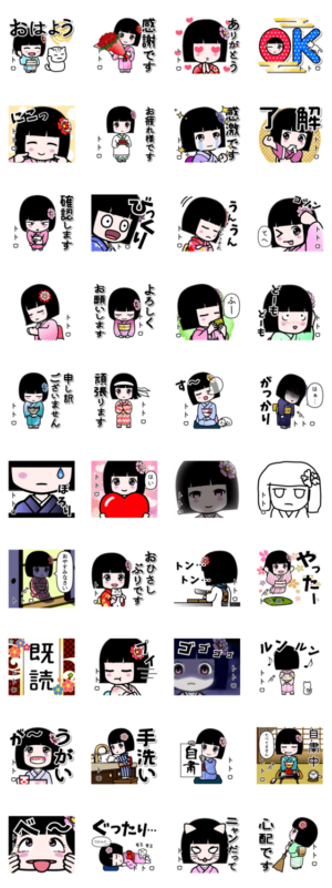 『トトロ』用のよく使う言葉を詰め合わせた座敷童子のスタンプです。和服 着物 浴衣かがりひな より発売