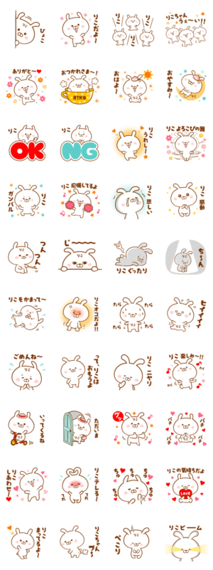 りこ/莉子/璃子/理子/梨子/李子/浬子/リコ等、りこちゃん専用の毎日使える日常会話がいっぱい!愛しのうさちゃん名前・あだ名スタンプです。はちむー より発売