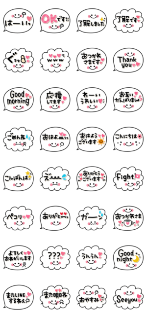 一発で反応を済ませたいときに重宝してます!コレはシンプルな顔文字もセットだからより伝わりやすいと思うし。時間がないときなど、吹き出しスタンプは本当に便利です。