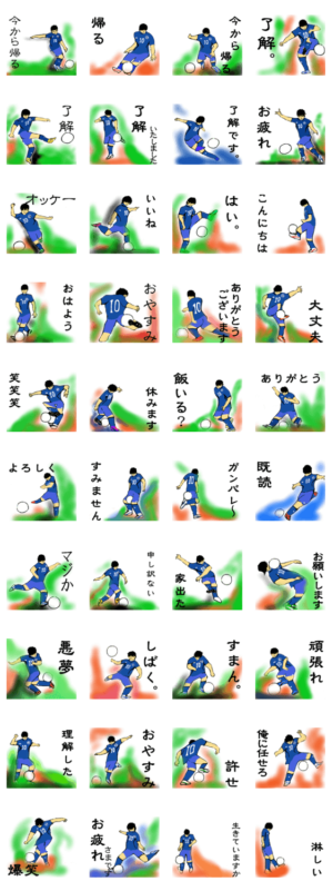 カッコイイ「サッカースタンプ」です。 日常会話で使いやすくなっております。 サッカー好きな方、お買い得だと思いますよ。