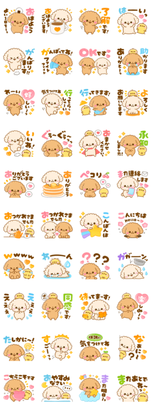 トイプードルを飼っているので、うちの犬みたいですごく可愛くてお気に入りのスタンプです。犬好きの友達に使っていますが、可愛いと言ってくれて友達も使い始めました。