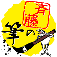 「斉藤」さん専用落款付き。鳥獣戯画の蛙がしたためし書。デカ文字シンプル使いやすいワードをチョイス。かえる、カエル、ハンコ、筆、敬語、丁寧、お名前、苗字。