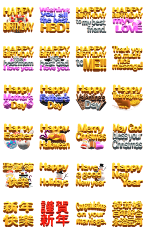 今まであるようであまり見たことのなかった文字のみなスタンプです。絵がついているスタンプを送る事が抵抗のある方でもご使用いただけると思います。