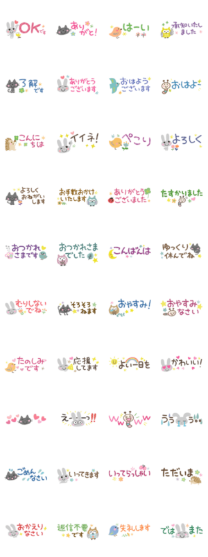 省スペースで場所をとらない、人気の動物スタンプです。 敬語/うさぎ/鳥/黒猫/ふくろう/挨拶