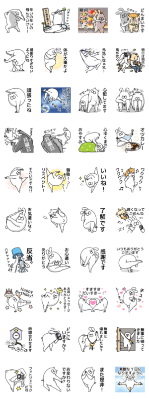 ネタで使えて幸せとあたたかさを運ぶ言葉詰め。気遣い、お疲れ様、ありがとう、誕生日お祝い、連絡、敬語。柴犬付き。人型動物シリーズ3ver3。イラストレーターちぎらみおちぎらみお より発売