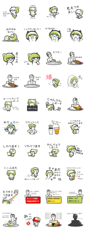 ヤギくんと珈琲おじさんが、毎日の運動・コーヒーブレイク・じゃんけん・たまの大食いをおすすめるスタンプ。 主にオフィス勤務の人向けです。