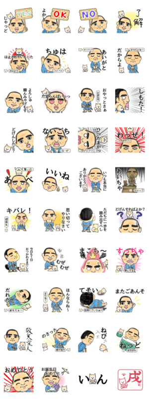 鹿児島生まれの"せごどん"をモチーフにしました。元気いっぱいな西郷ドンと柴犬がコミュニケーションを盛り上げてくれます。鹿児島弁も入っていて誰でも使える日常系です。
