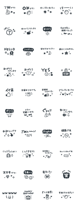 大人のシンプル省スペーススタンプです。敬語/コンパクト/モノトーン/白黒/モノクロ