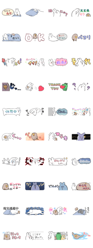怠惰なウサちゃんの、省スペースなスタンプです。