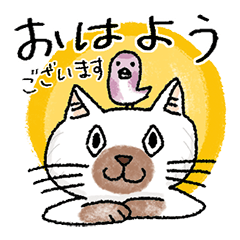 絵本作家・かめおかあきこが描く、ひし形おめめネコのいつでも誰でも使える日常会話のスタンプかめおかあきこ より発売