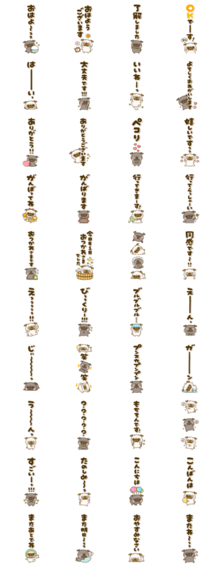 縦にながーいデカ文字BIGスタンプ♡パグちゃん黒パグちゃんが大活躍の毎日使えるほのぼのスタンプです♪敬語も♪犬