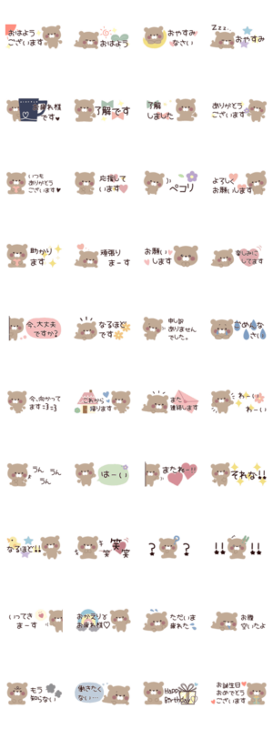 シンプルな省スペースのスタンプです。大人可愛いくまの敬語多めです♪*。 小スタンプ/日常/毎日/使いやすい/くま/動物なーゆ より発売