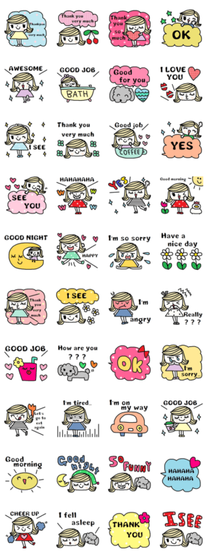 これ、かわいい!英語スタンプってのも良いし、友達に送ったら喜んでくれる。