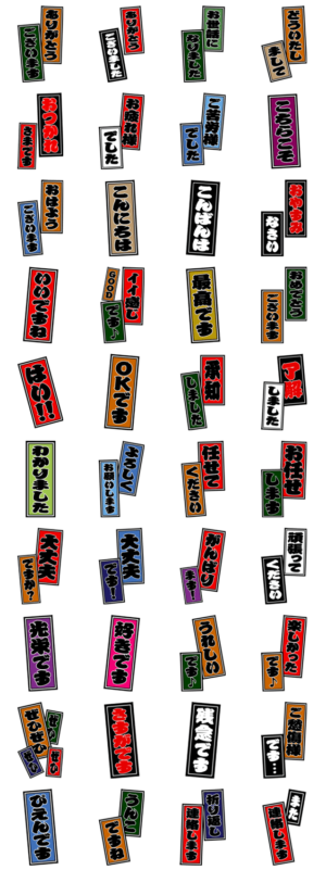 千社札風ビッグスタンプの敬語バージョン。相撲の番付や歌舞伎の看板などにも使用されているフォントは大きくて見やすく、インパクト満点!