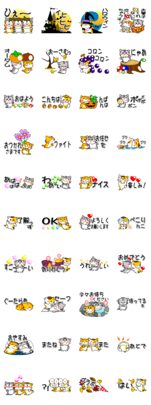毎日楽しく使える可愛い3匹の猫達の小さな秋用スタンプです。省スペースやハロウィンスタンプもあります。ohausa より発売