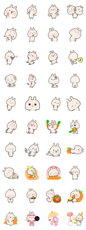 言いにくいことを察してほしい時、黙ったまま伝えるスタンプです。文字がない分、自由度が高いです。ゆるくてまるいうさぎとひよこみたいなインコがお伝えします。山崎りこ より発売