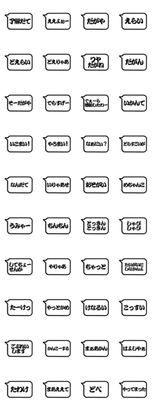 愛知県西部(尾張国)で話される日本語の方言 名古屋弁のスタンプ。方言/吹き出し/大人/なごや/日常会話/筆文字/シンプル/文字のみ/漢字/あんじープロジェクト より発売