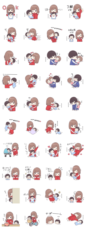 ジャージちゃんとベビーになったジャージくんのカスタムスタンプです。6文字まで対応