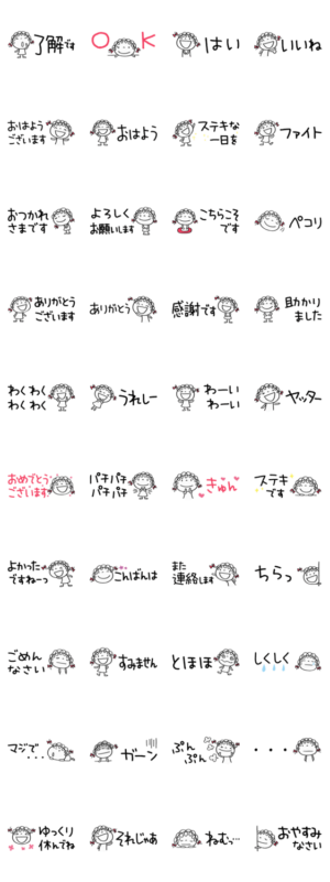 「ありがとう」「いいね」から「ペコリ」まで。サラッと届けやすいシンプルな日常言葉集。くるリボンで軽快にメッセージを届けよう。家族、学校、お仕事でも。Mami / エストループ より発売