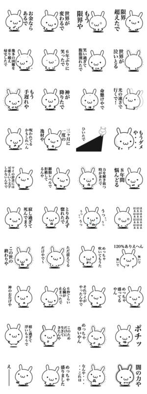 関西弁で盛らずにはいられないウサギのスタンプです。hoshico より発売