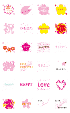 このスタンプは動くさくらやサクラの花びらを使って、あなたの気持ちを伝えてくれます。桜のように時に明るく華やかに楽しく、そしてしっとりと伝えます。