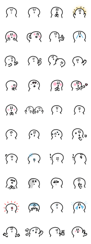 笑ったり、怒ったり、泣いたり、照れたり。 しろくてまるい、もちまるくんの顔スタンプ。円山ゆりの より発売