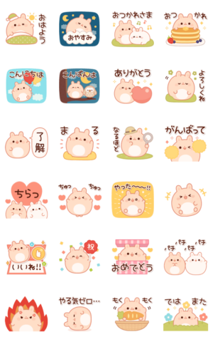 友達や家族、恋人に!まんまる体型が可愛いウサギさんのとびだすスタンプです♪