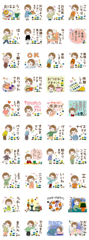 夏の暑さが去り、ようやくやってきた過ごしやすい秋を”ほっこリ”過ごしたい人向けの秋用のスタンプです。