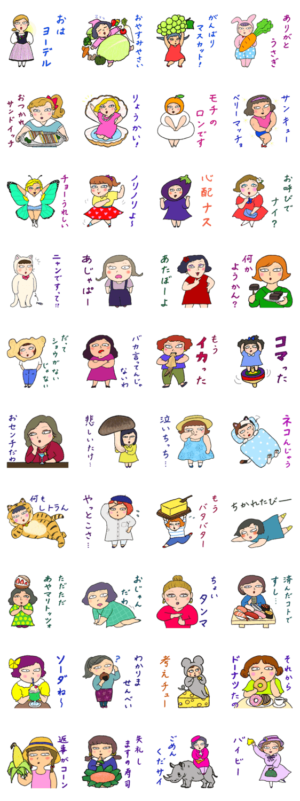 古い流行り言葉や懐かしいギャグ・ダジャレを使った、可愛い女性たちの楽しいスタンプです。WH より発売
